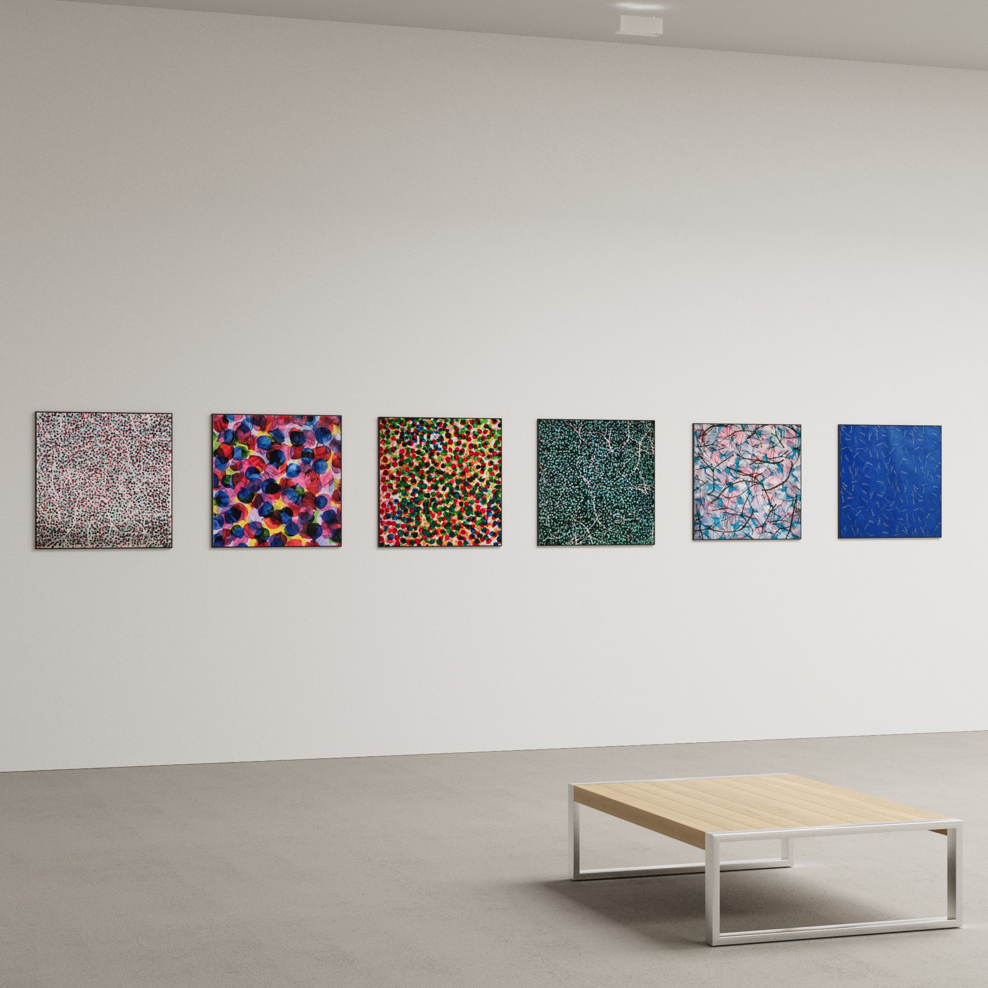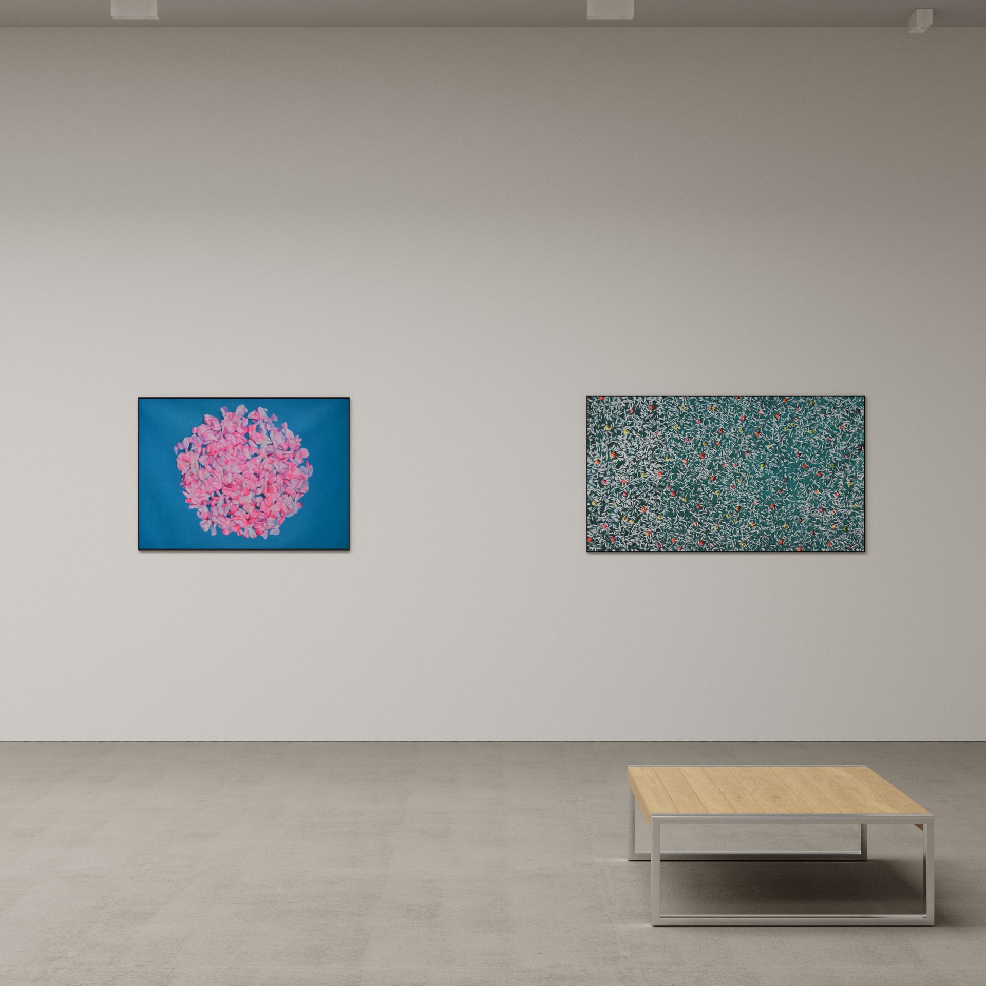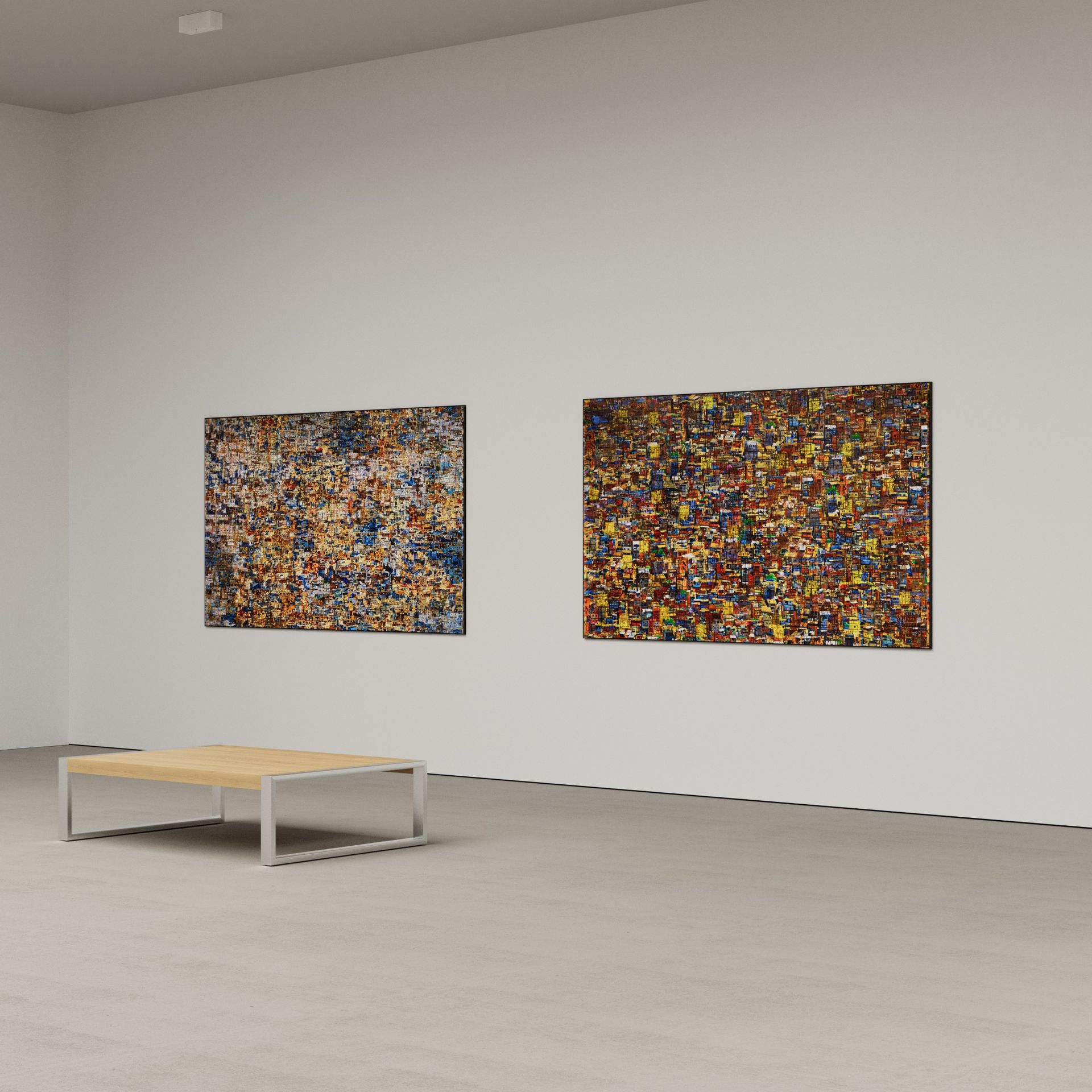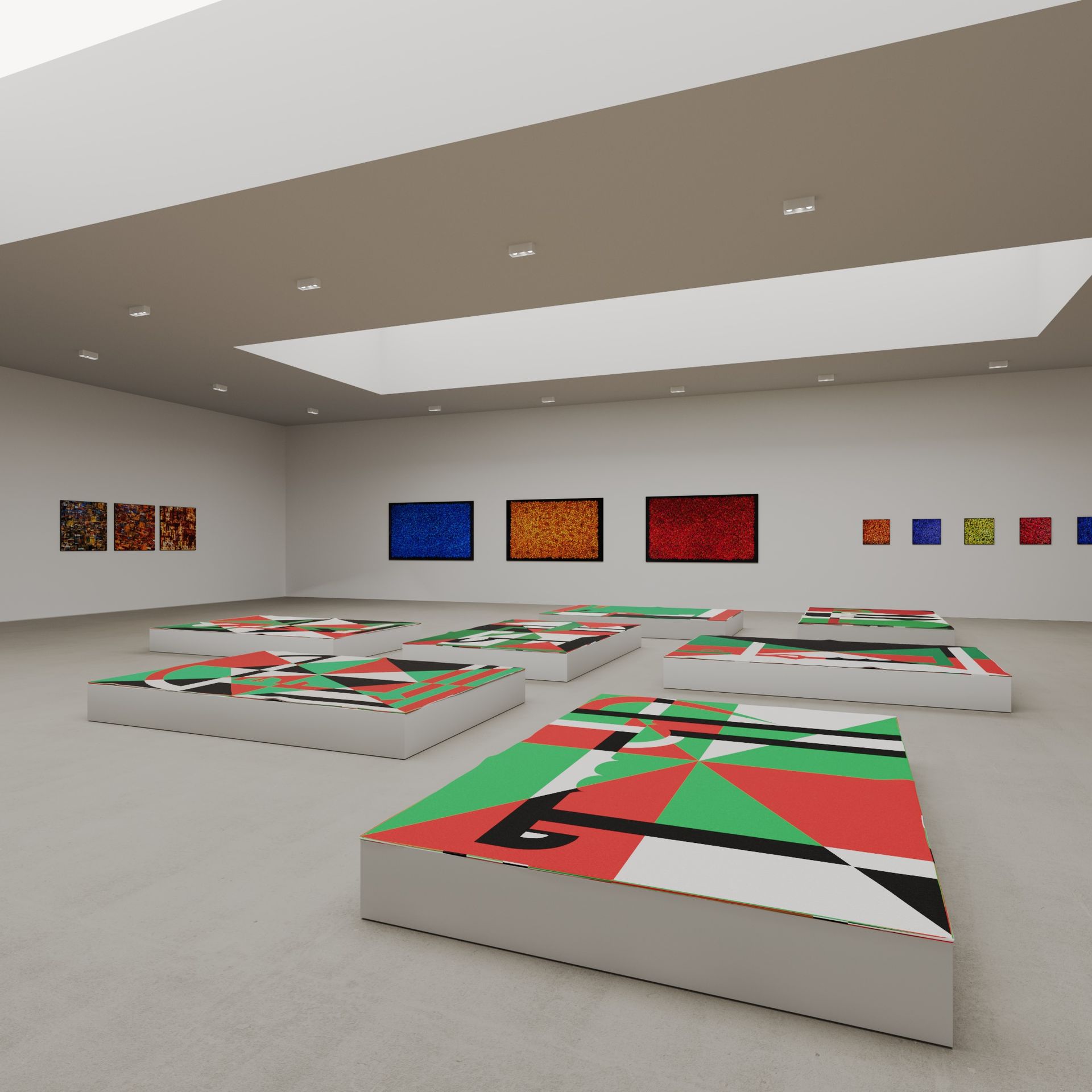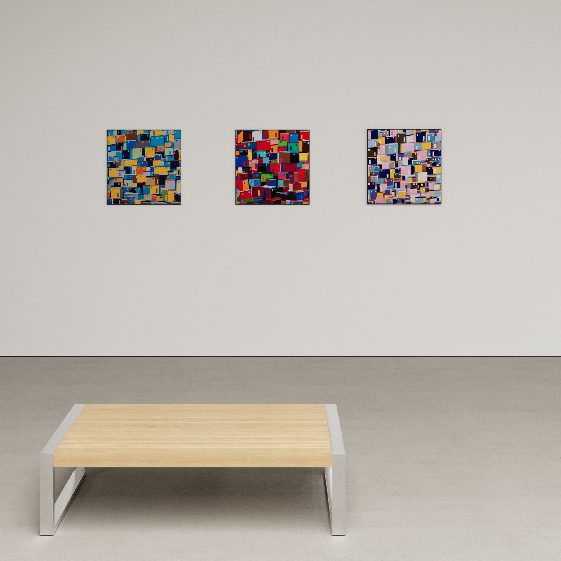 He has explored these themes across many mediums from video and sculptural installations to fine tapestries, but painting has always been the core practice in his work. Imagery generated from his monumental installations such as ‘Genie’ at The Imperial War Museum, ‘Enter Ghost, Exit Ghost’ at the Yang Gallery Beijing and ‘Giardino Occupato’ at the Venice Biennale, re-emerge and are reformulated in his paintings, mostly in his use of partly abstracted depictions of houses. These houses, presented in immersive installations or entirely covering the surface of paintings, have become a signature motif of his work, in which they are used to condense and intensify the relationships between abstraction, repetition and pattern, alongside ideas of the home and displacement.