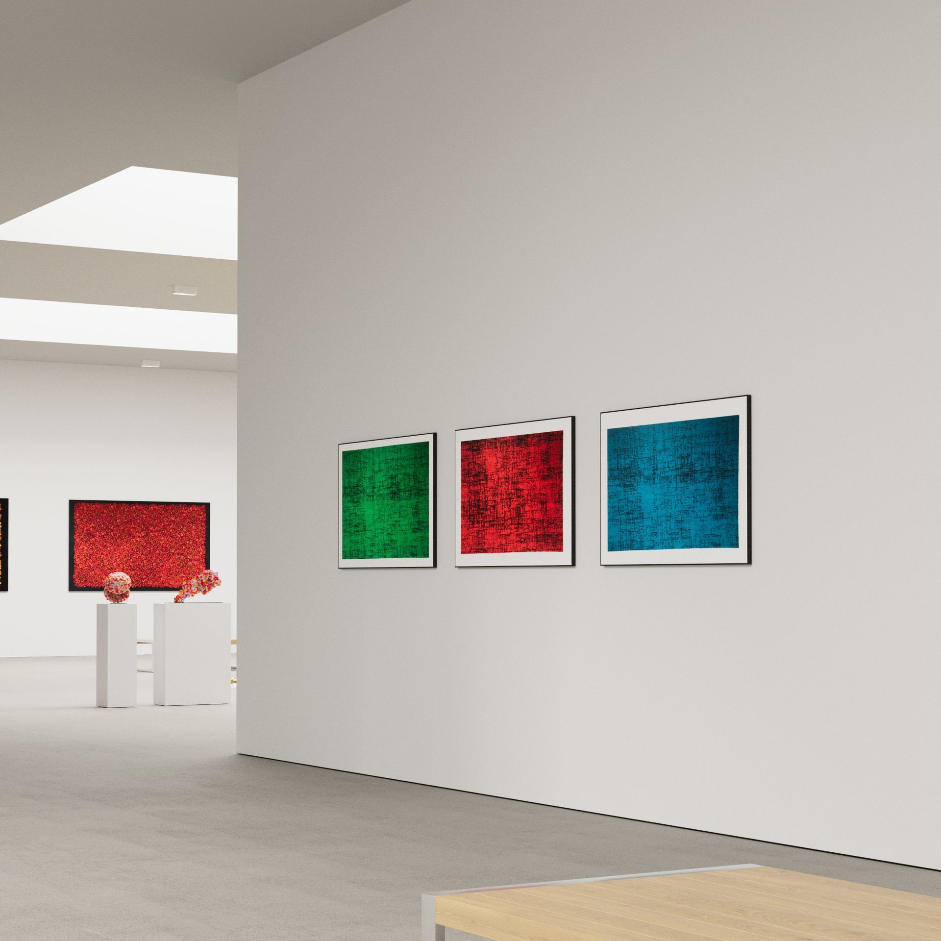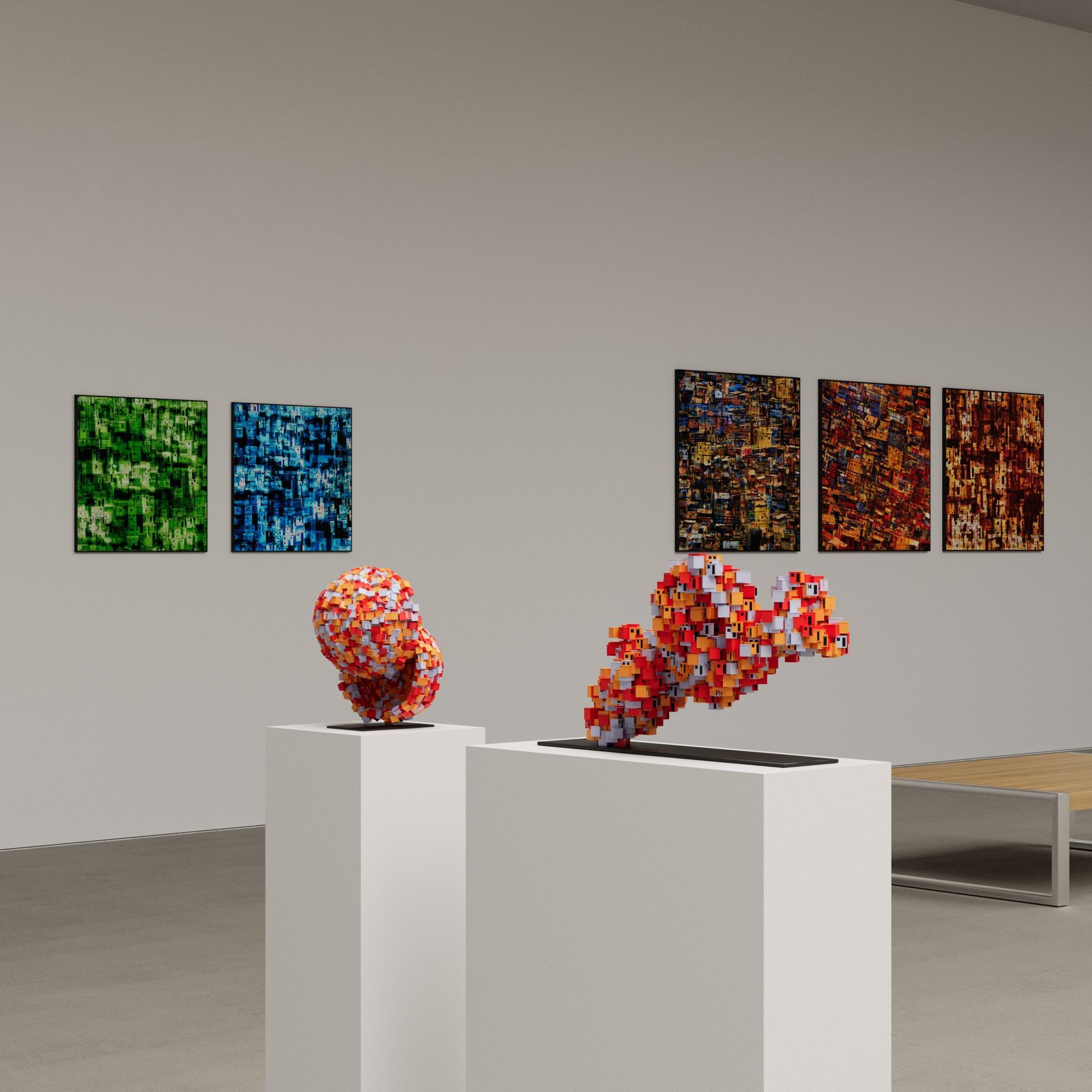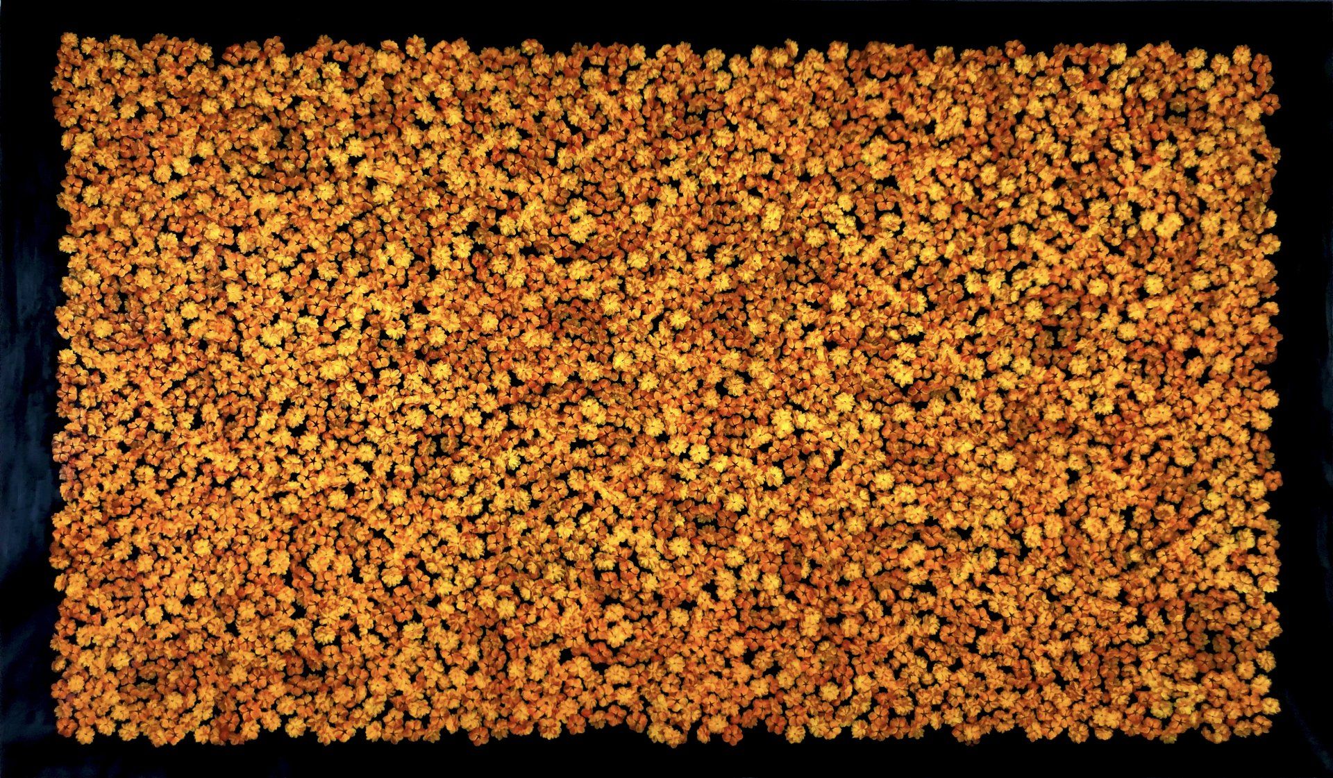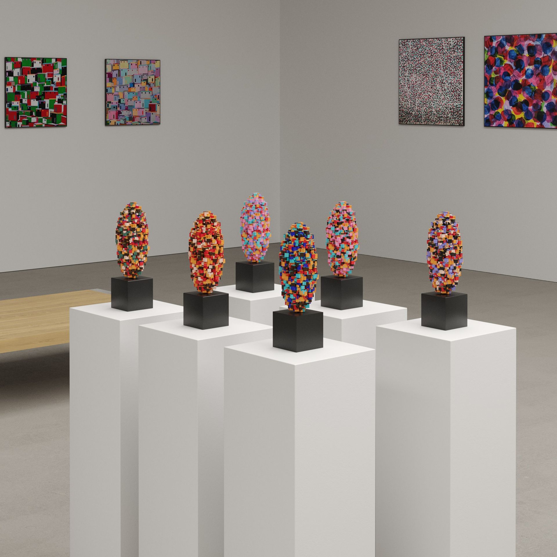 He has explored these themes across many mediums from video and sculptural installations to fine tapestries, but painting has always been the core practice in his work. Imagery generated from his monumental installations such as ‘Genie’ at The Imperial War Museum, ‘Enter Ghost, Exit Ghost’ at the Yang Gallery Beijing and ‘Giardino Occupato’ at the Venice Biennale, re-emerge and are reformulated in his paintings, mostly in his use of partly abstracted depictions of houses. These houses, presented in immersive installations or entirely covering the surface of paintings, have become a signature motif of his work, in which they are used to condense and intensify the relationships between abstraction, repetition and pattern, alongside ideas of the home and displacement.